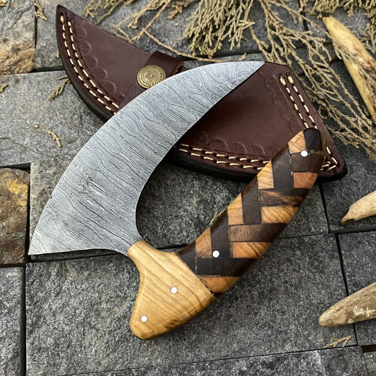 Custom Hand-Forged Carbon Steel Alaskan Ulu Knife with Sheath