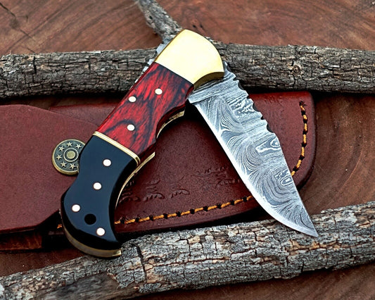Damascus Folding Pocket Knife for Camping and Skinning