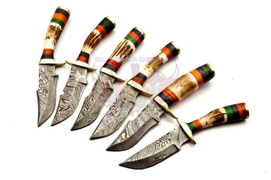 Custom Handmade Damascus Steel Knife Set with Deer Antler Handle