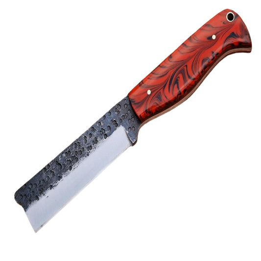 Damascus Bull Cutter Knife - Hand-Forged Cowboy Knife with Resin Handle
