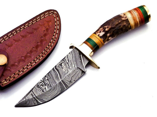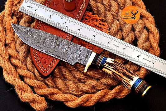 Damascus Bowie Knife with Stag Antler Handle