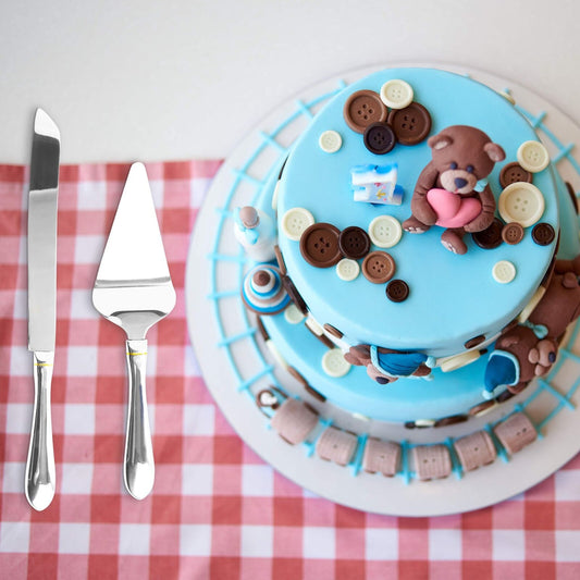 Premium Stainless Steel Cake Cutting Knife and Server Set - Silver Cake Cutter