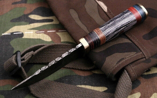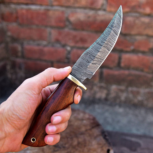 Handmade Damascus Steel Skinning Knife with Wood Handle