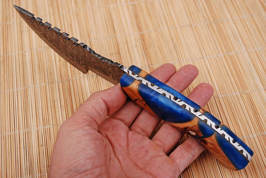 Damascus Track Cutting Knife for Camping