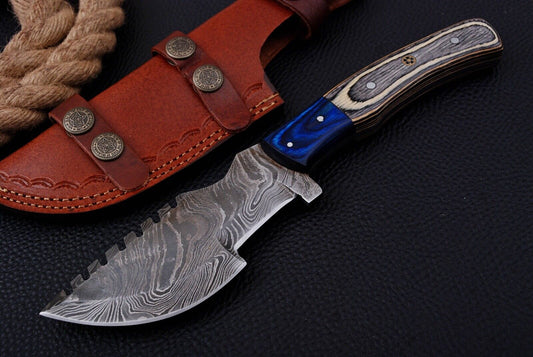Damascus Tracker Knife for Skinning and Survival